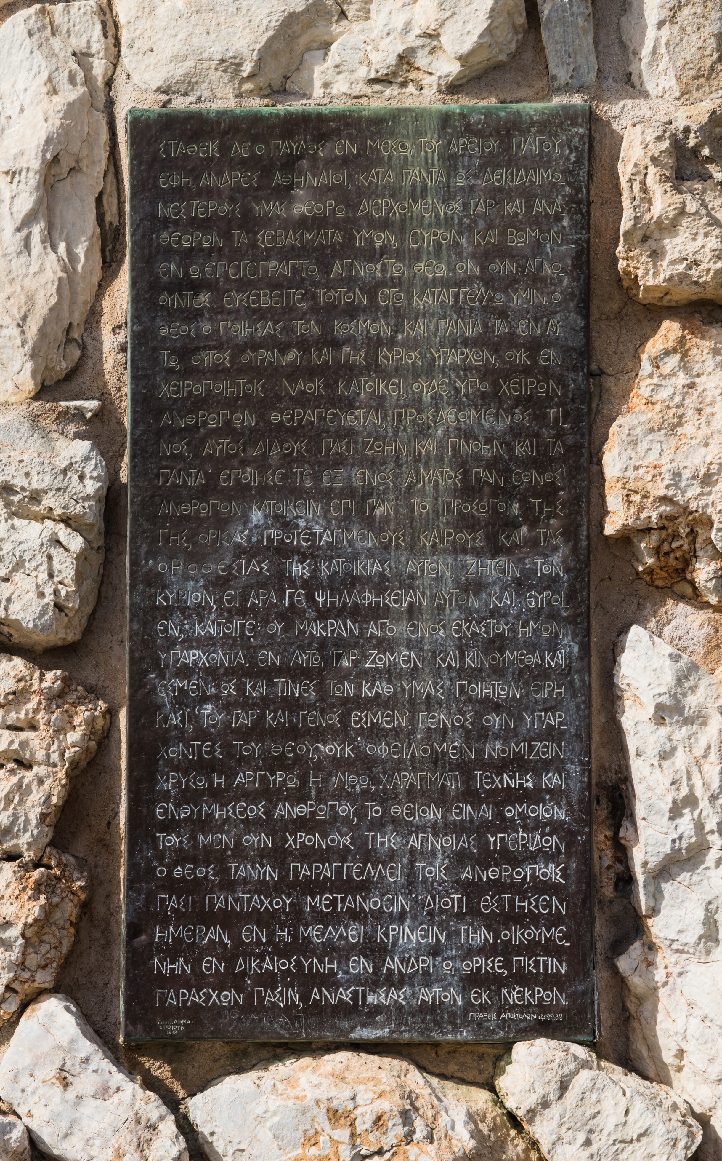 At the Areios Pagos, as part of his missionary career, the Apostle Paul delivered his famous sermon to the Athenians (Acts 17:22-31).